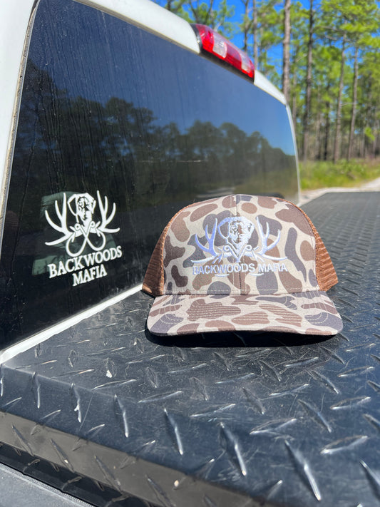 Old School Camo Backwoods Mafia Logo Hat